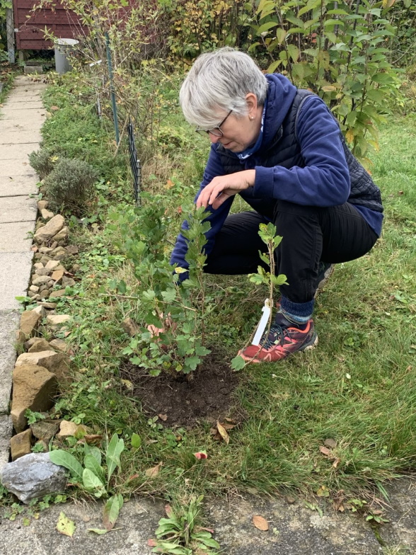 Beim Workshop "Den Garten naturnah winterfest machen" wechselten sich Theorie und Praxis ab. So wurden mit tatkräftiger Unterstützung der Workshop-Teilnehmenden im NABU-Naturgarten jede Menge Blumenzwiebeln heimischer Frühblüher in den Boden gebracht, Sträucher geschnitten, das Schnittgut auf der Benjeshecke verteilt, ein Igelhaus aus Stein aufgestellt sowie Obststräucher gepflanzt. Jetzt kann der Winter kommen...